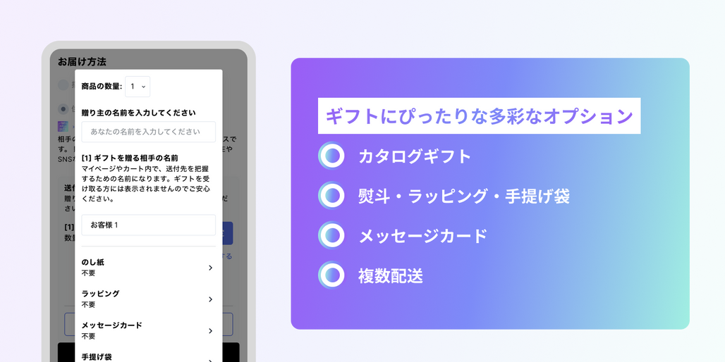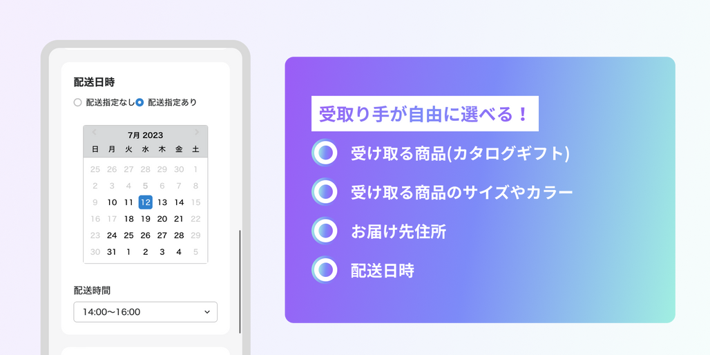 さらにデジタルのメッセージカードで大切な想いを添えたり、お相手がURLから好きな商品を自由に選べるカタログ機能など、eギフトならではのプレゼント体験を実現できます!